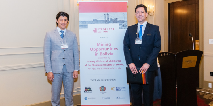 Los socios de la firma en Bolivia Carlos Pinto y Pablo Ordoñez asistieron al evento internacional junto al Ministerio de Minería y Metalurgia.